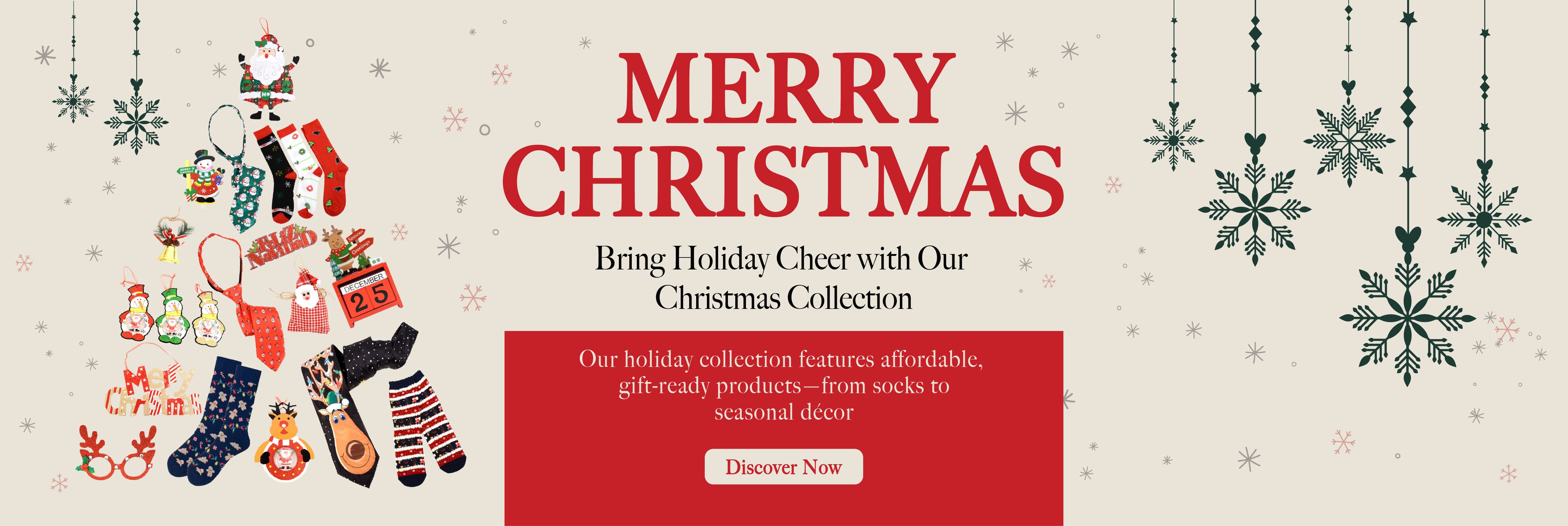 $1.25per unitGet holiday-ready with this festive 36-piece pack of Men’s Christmas Socks, featuring a random assortment of 12 fun and festive styles. Ideal for seasonal retail displays, stocking stuffers, or quick...NVS36ASST-MAS1$1.25per unit -